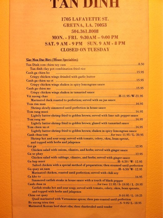 Welcome to Tan Dinh, a culinary gem nestled in Gretna, Louisiana, specializing in authentic Vietnamese noodle soups. This vibrant eatery presents a warm, casual atmosphere, perfect for family gatherings or a cozy meal with friends.